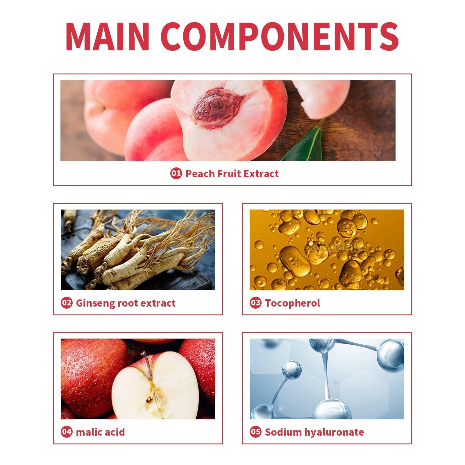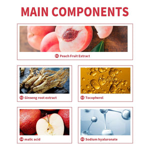 🍑 Peach and fruit acid essence: Gently exfoliates the skin.
